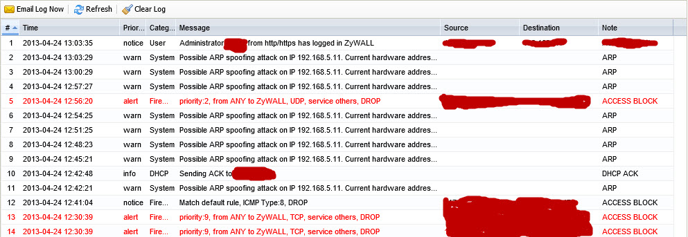 DTL-1-ARP_POISON_DETECTED: STA [00:01:02:0e:54:c4, 0.0.0.0] ARP (op 1) received with