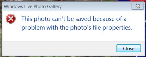 After importing my photos to my PC (Windows 7) from my iPhone, I'm unable to edit them (for example, rotate, crop). I get the following error "this photo can't be saved because of a problem with the photo's file properties"