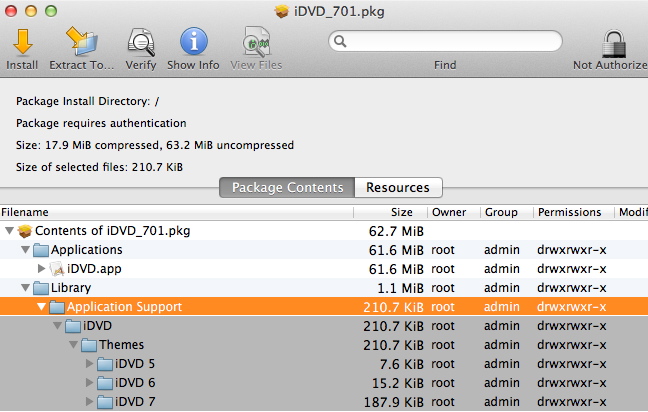 I tried downloading update 7.0.1 and opened it with Pacifist. There were only Themes 5,6,7, in there. I tried adding themes 5 out of 7.0.1 into the Application Support/iDVD/Themes folder on my MBP with Mountain Lion, tried repairing permissions (none to repair) rebooted and then tried iDVD, but while themes 6 and 7 are ok, it does not recognise the Themes 5 folder or any of the older themes.