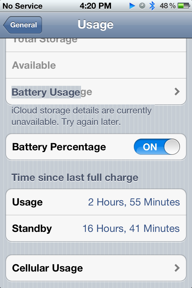 Well here's a summary of my day today. I unplugged at 11pm last night and left the phone overnight. When I woke I was at 99% after 6hours. I turned on Time Zone to see if I would notice any difference in battery drain, to my surprise things were normal. Anyway I took the subway to work, listen to a 20 min pod cast while in a no signal area and once I got to work I left my phone on stand by. This was the result by then: