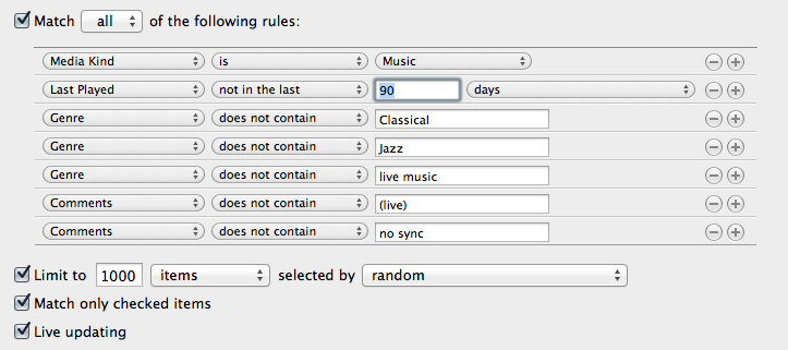 Having said that, I'm NOT happy that I had to spend several hours rebuilting my playlists using the added features to become compliant to Apple's "way" of doing things. It's very reminicent of the iphone antenna "you're holding it wrong" issue. In the end, I now have the exact same playlists (albeit, the logic behind them was changed) and they are iCloud compliant. Granted, I haven't figured out how to make Genius playlists work yet.