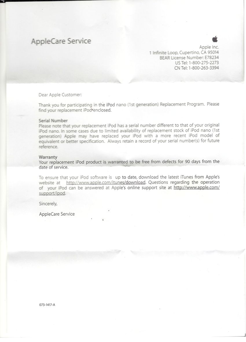 Submitted the request on 11/12/2011. Received an email that with subject: "Apple Product Replacement Request ########" on 11/15/2011 and the envelope on 12/01/2011. But the 11/15/2011 email has the below paragraph which am not sure whether to send my NANO to them or not.