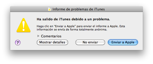 Thanks, red_menace, you were right; after an itunes forced exit, I was asked to create an inform, then to send it to apple and finally to "Automatically Send Anonymous Diagnostic and Usage Data to Apple". I accepted and cheked "Don't ask me again".