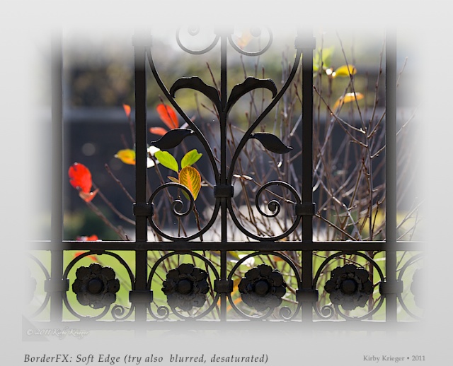 BorderFX -- a free and worthy plug-in for Aperture -- has a few things to try. Here I've illustrated the "Soft Edge" effect: