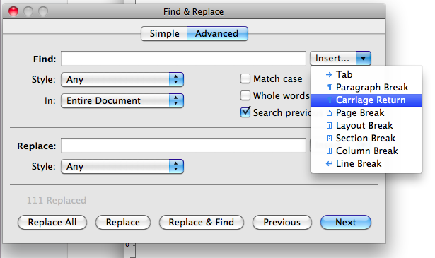 The app behave the same in both cases except that if we apply [ Replace ] with a Carriage return selected when we ask to Find & Replace Paragraph Break, it will be replaced.