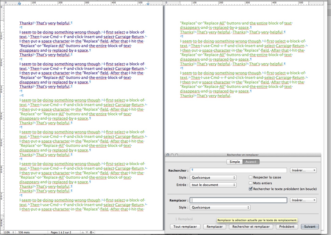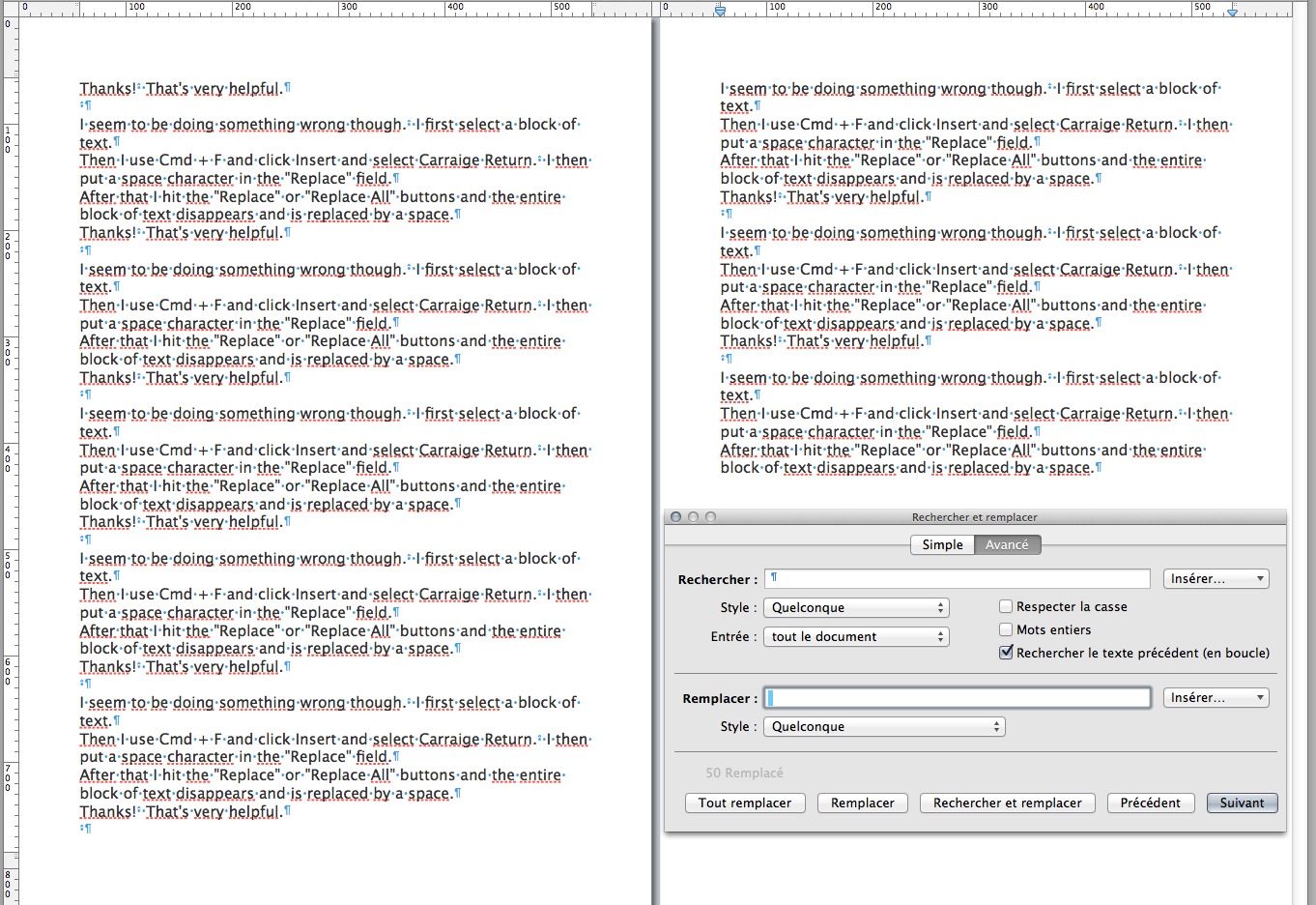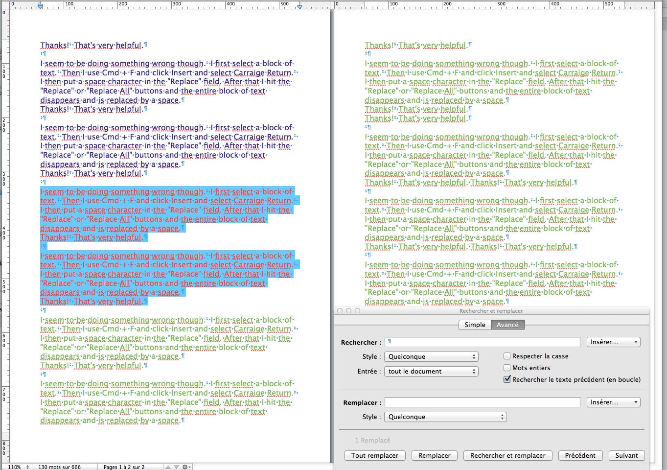 As you see, one used Rechercher et remplacer while the other use Remplacer et rechercher.
