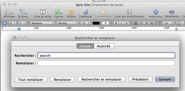Checking in the French User Guide, I discover that it use also Replacer et Rechercher