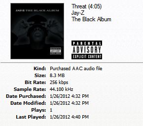 - Purchased Jay-Z's "Threat" (Explicit Version). It auto-downloaded and also got added to iCloud. Did this with XP / iTunes 10.5.3.