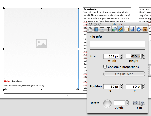 Figure 5-6. Use the Metrics Inspector (the ruler icon) to get precise sizes and positions for the elements on your page.