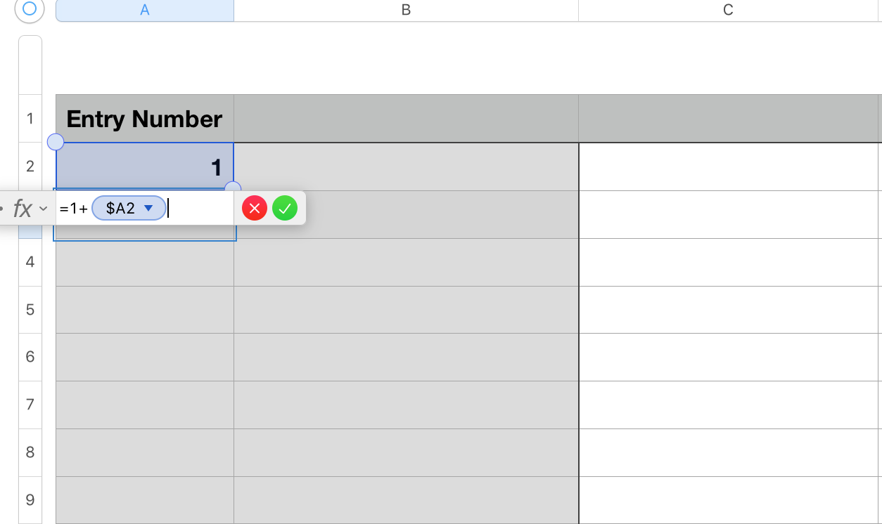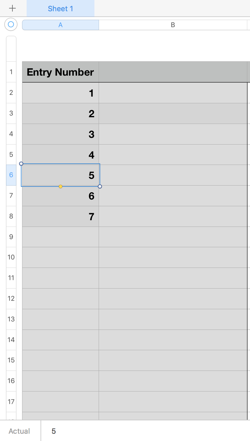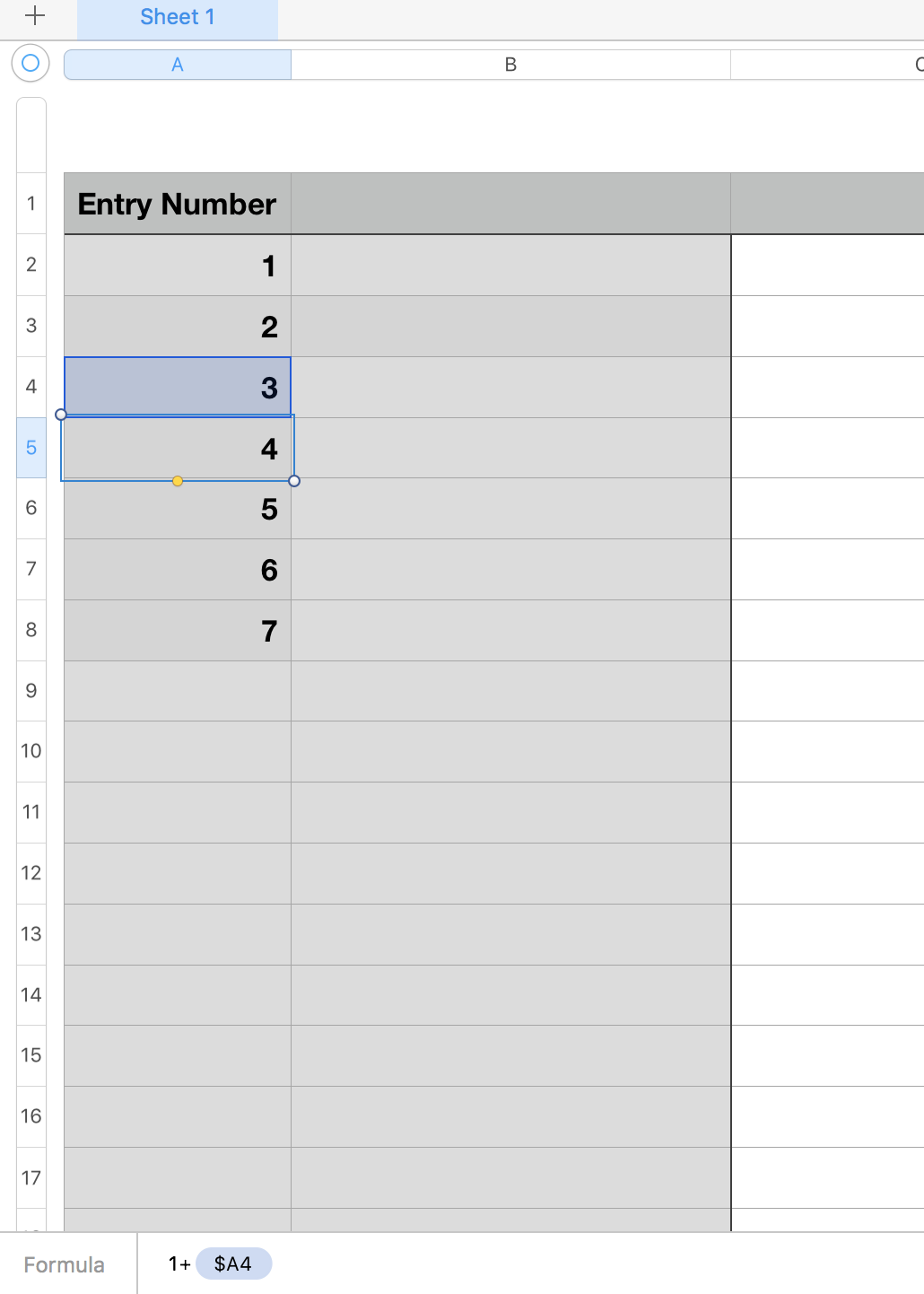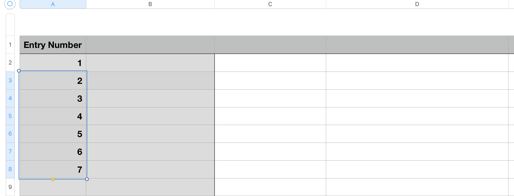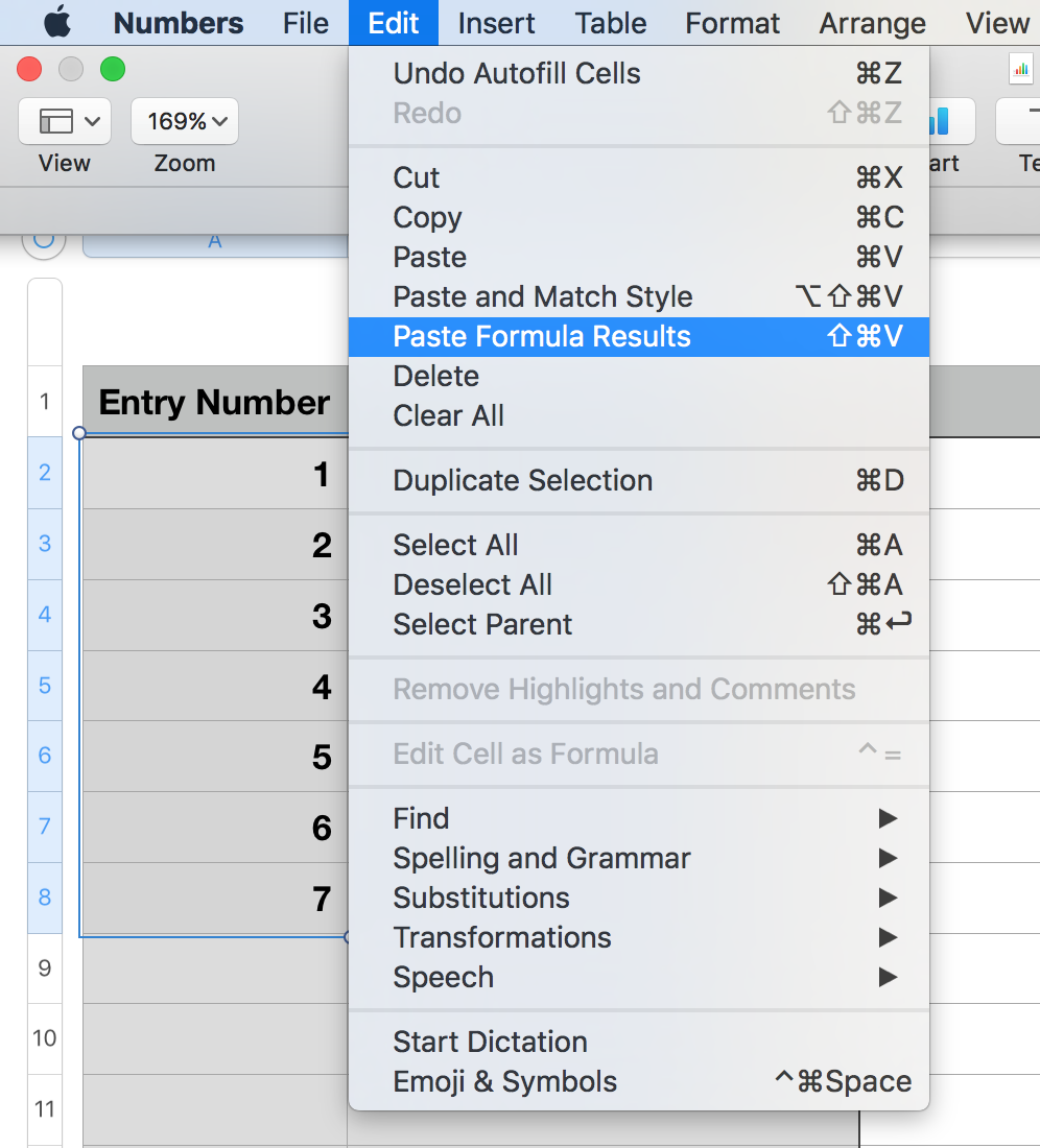 Drag the cursor across the Numbers window to capture the contents of the column.