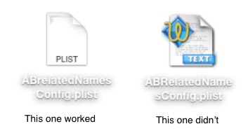I created and moved over the ABRelatedNamesConfig.plist file to the appropriate location in Contacts.app's Package.