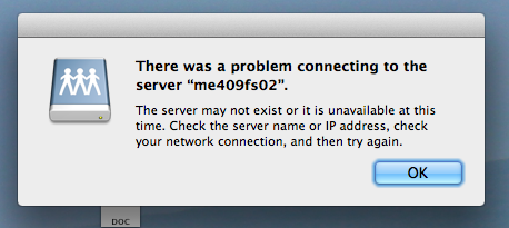 There was a problem connecting to the server "me409fs02"