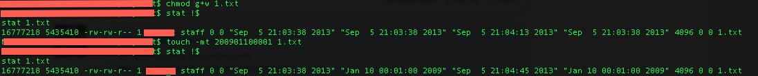 This used to set creation, modification, and access time to 20090111, in Snow Leopard. However, I can no longer do this in Lion. It does set modification and access, but creation date is still screwed up.