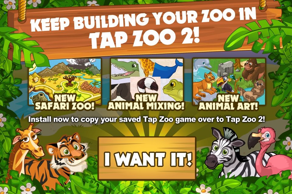 I downloaded the game about a year ago and payed it also with real money to get better graphics and animations and had a lot of fun. But from yesterday on, the game got an update and I cant loggin anymore. I get a message to load a newer version Tap Zoo 2, which forces me to pay lots more money and play other games also, or I cannot get all the rewards.