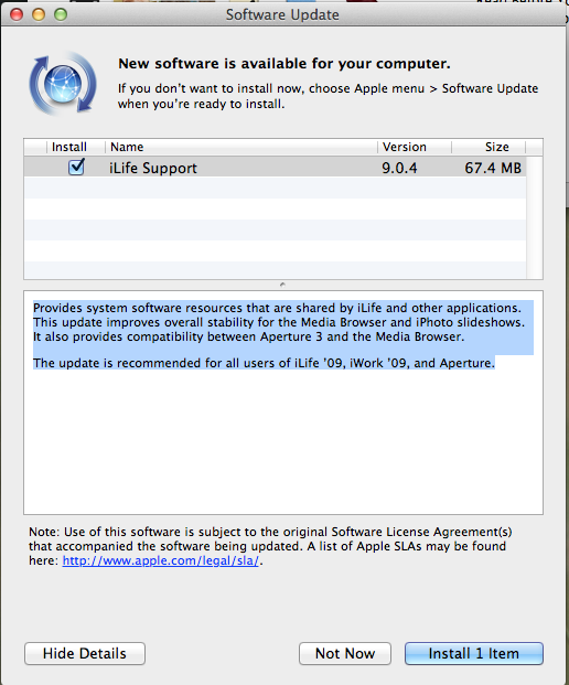 Thanks for the help with getting iDVD. I did the custom install from iLife '09 to OS 10.7.5 and it opens fine. I haven't tried loading anything into it yet. I have a question about Software Updates. I installed the iDVD updates. It did one before updating to 7.1.2, I think it updated to 7.0.4 first. Software Update also wants to update iLife Support. When you did your install did you encounter this and did you do the update?