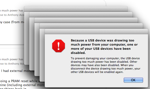 " To prevent damaging your computer, the USB device drawing too much power has been disabled. Other devices may have also been disabled. When you disconnect the device drawing too much power, your other USB devices will be enabled again."