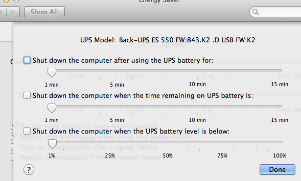 I bought a UPS by APC yesterday under the impression that I can have the option to set it to AUTOSHUTDOWN whenever there is a power failure. I just don't see it in the preferences. Where can I find it? Or is it even possible 🙂