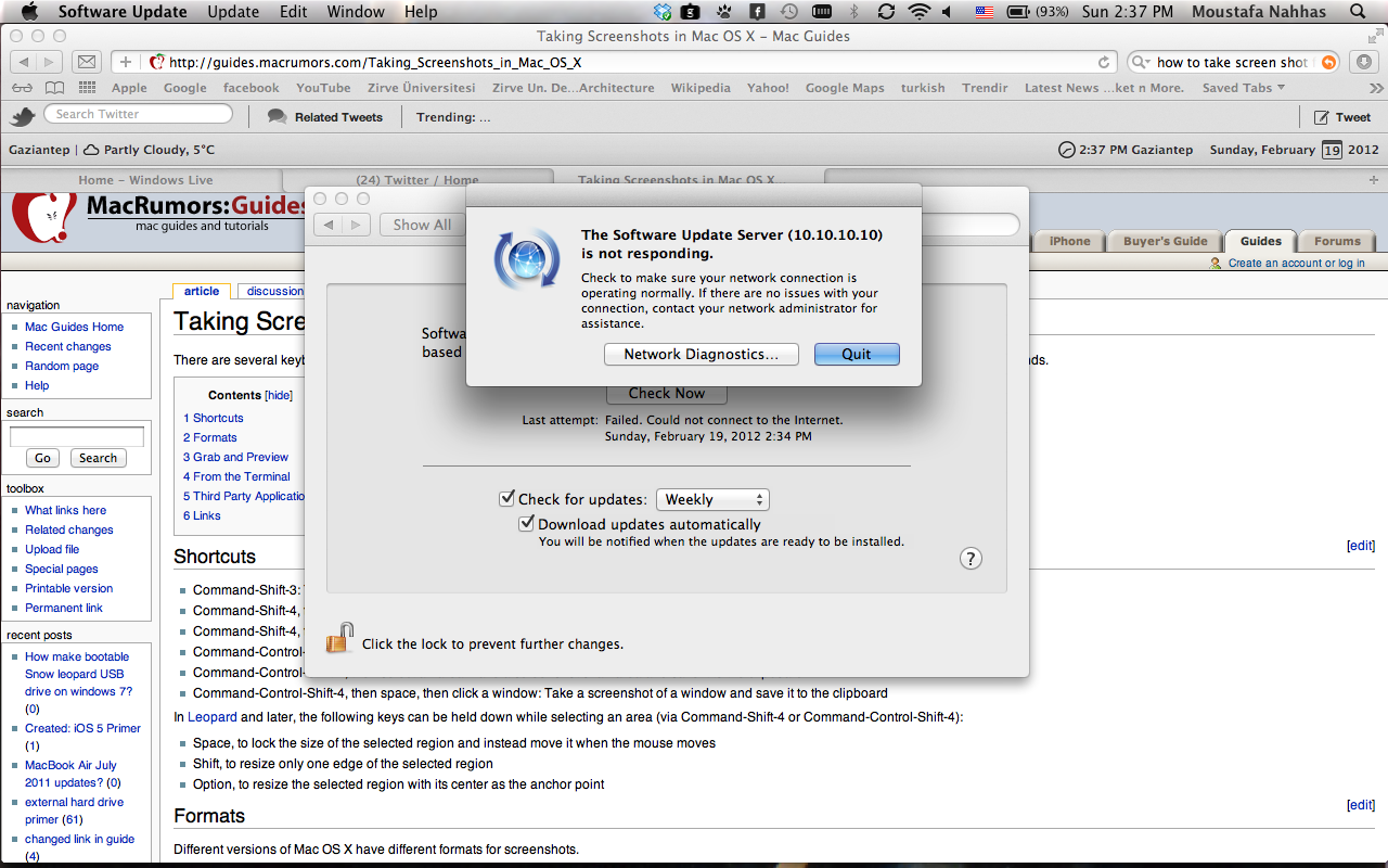 The Software Update Server (10.10.10.10) is not responding.