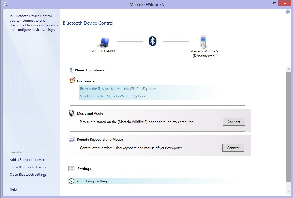 Click on your device and you will have access to the bluetooth configuration profile. Here you can connect-disconnect and adjust the settings:
