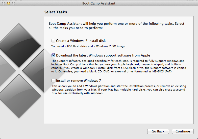 Make sure that ONLY the dwonload windows support software is checked.