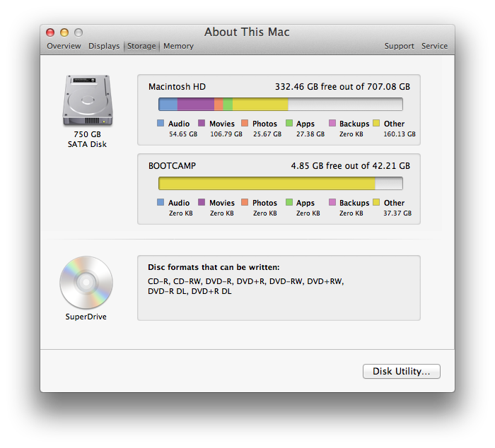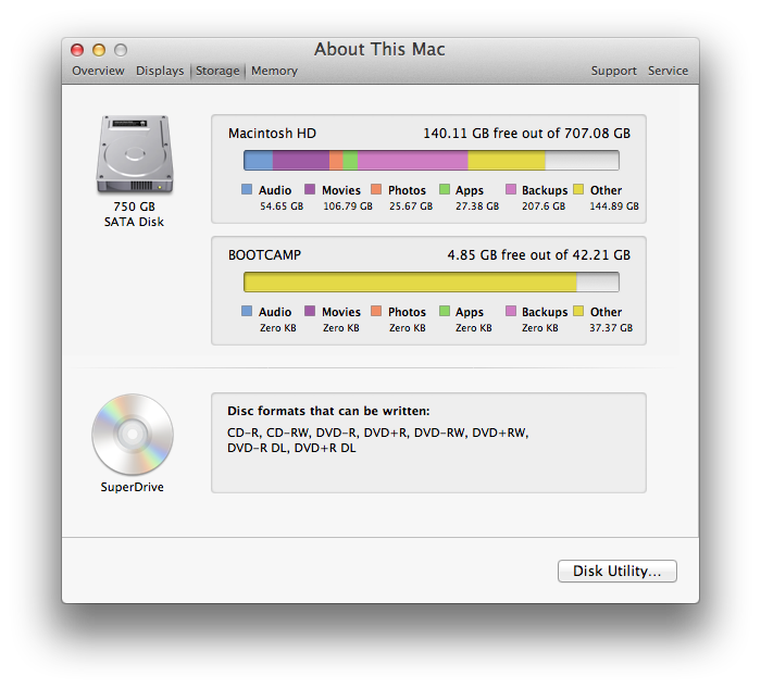 I have easily moved a few hundred GB off to the new drive, but my internal HD still shows as over 500Gb used.