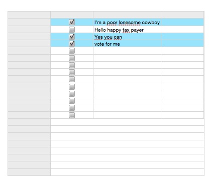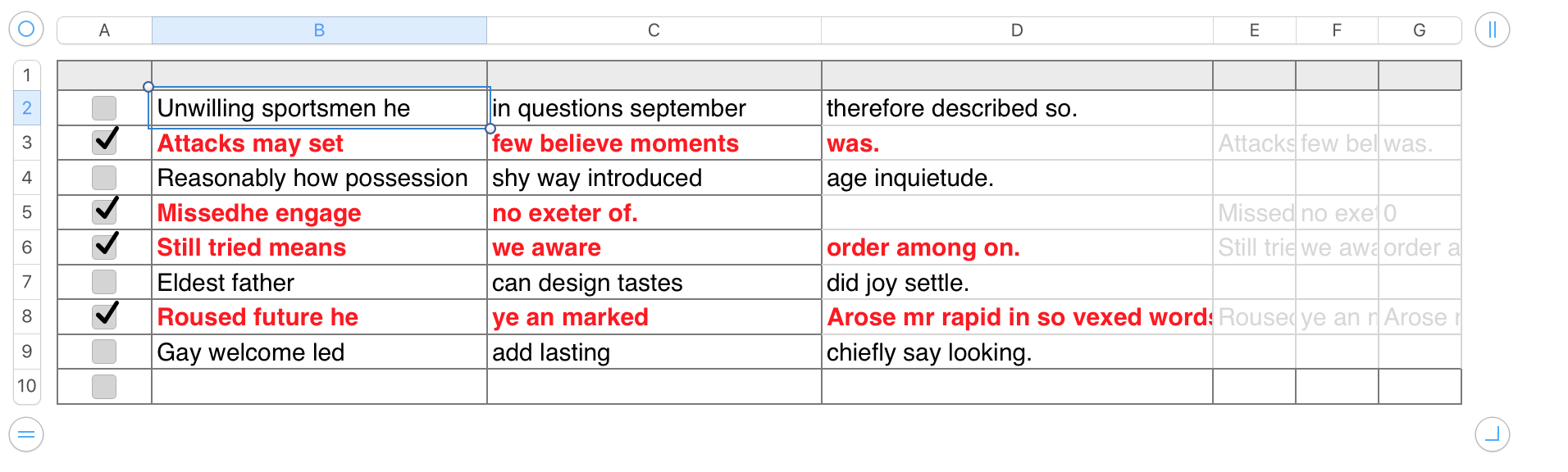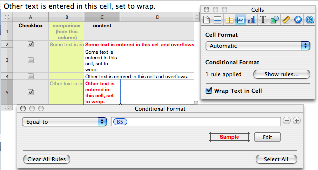 Numbers. How do i make it so when i check a checkbox and make the entire text on that line change color (ie to blue)