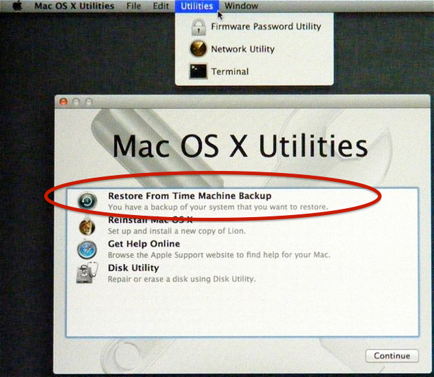 And then selecting Restore From Time Machine Backup from the Utilities Menu?