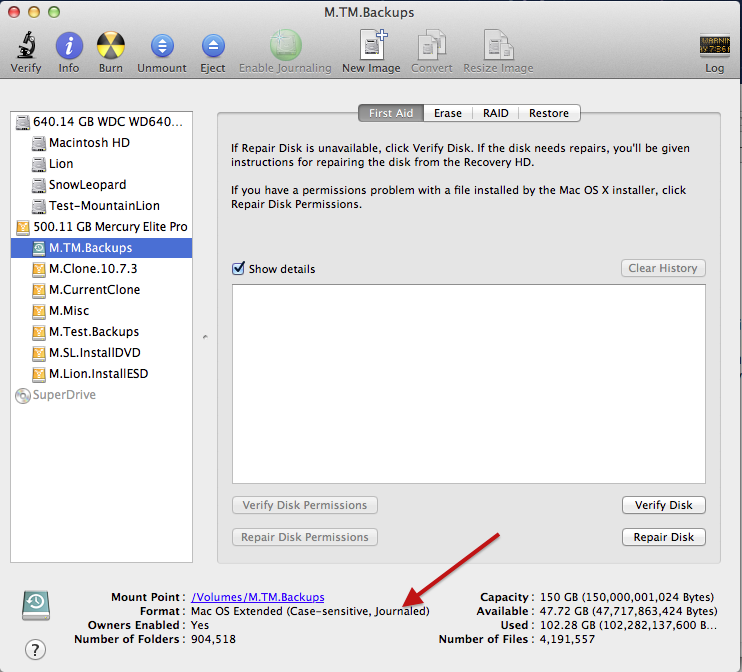 I am trying to restore a backup from the 1.5TB. finder sees the backups but gives me the case sensitive error when I try to restore from the drive.