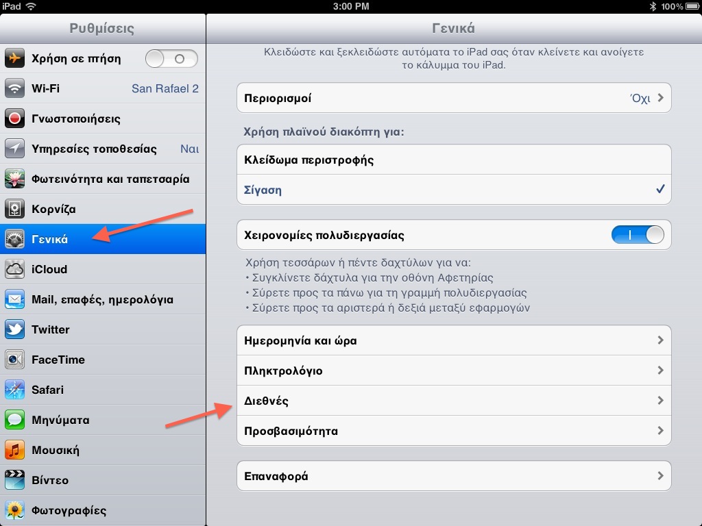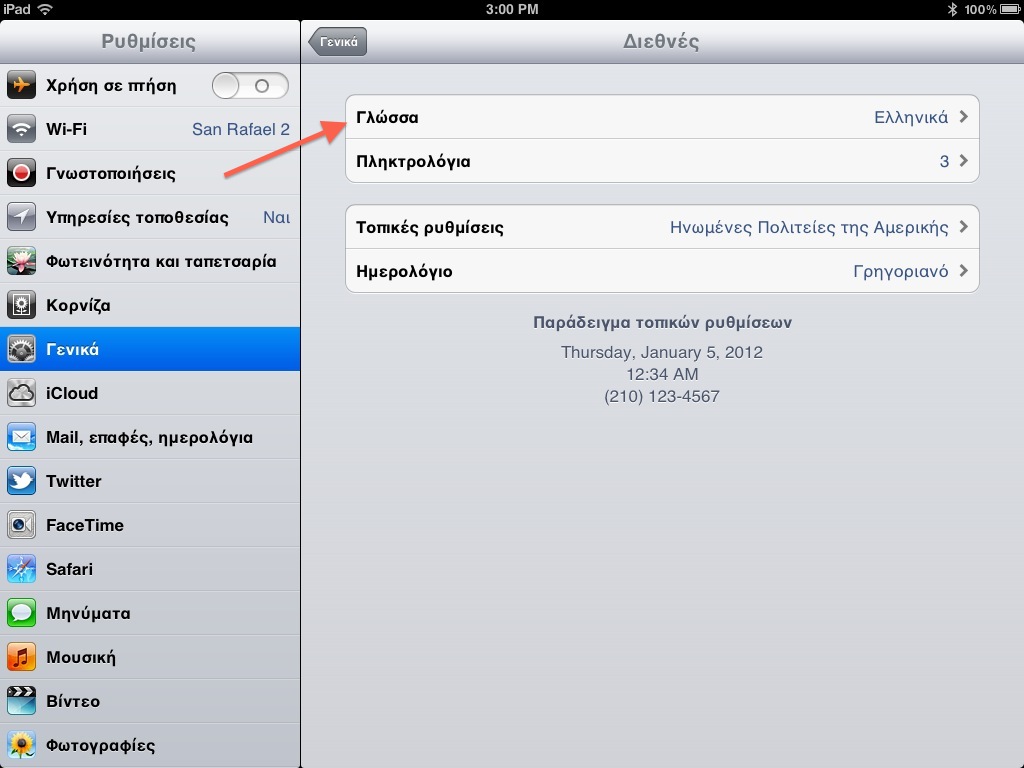 Ρυθμίσεις >Γενικές >Διεθνή >Γλώσσα