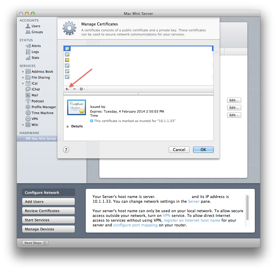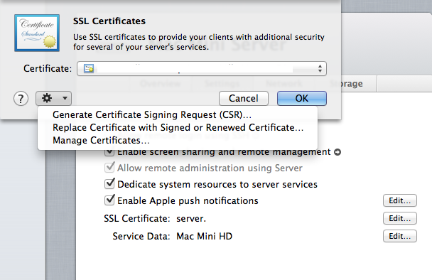 Another window pops up. Choose "Manage Certificates":