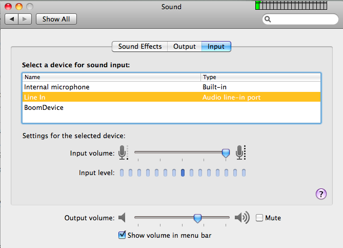 When I adjust the audio setting (apple icon--> System Preferences --> Sound --> select "Input" tab --> highlight " Line in; Audio line-in port") I can only hear sounds through the headphone but the mic portion does not pic up. If I hit the mic portion I see the bars move, that would indicate some sound being picked up. However, when I try to use the mic, through Mac Office Powerpoint 2010, the sound (if received through the mic) does not pick up.