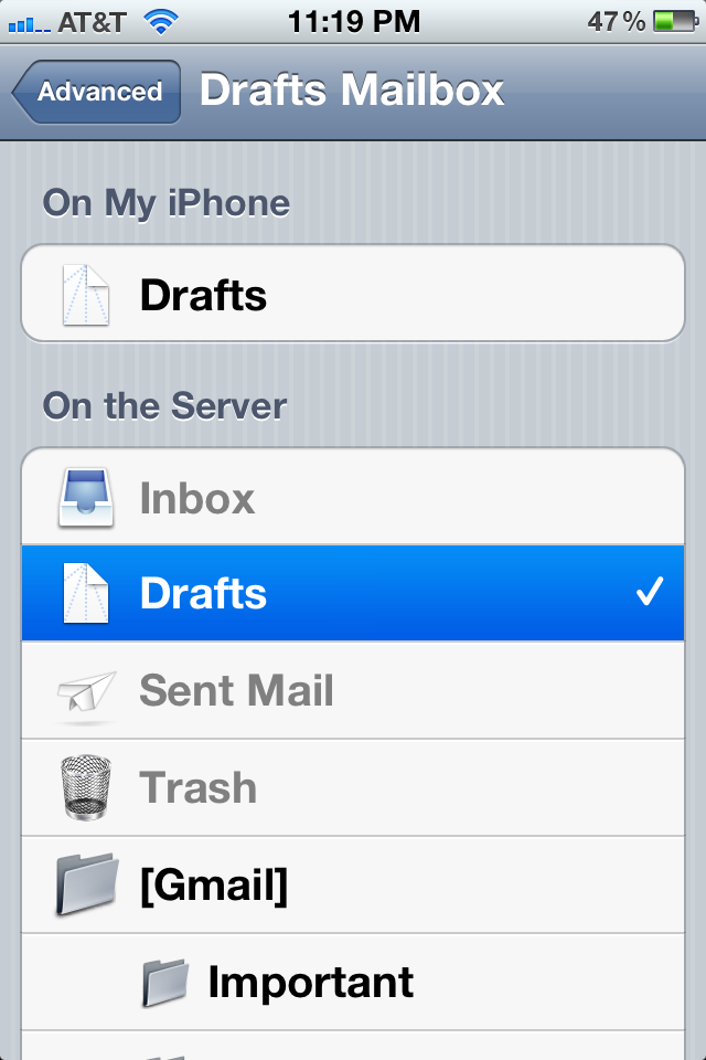 When trying to figure out if I can specify a certain folder to be used for the client rather than it going to the Imap folder, I found this in the iOS preferences:
