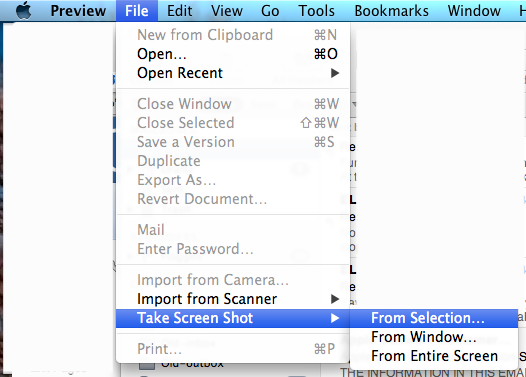 shift-command-4 : selected area (drag a rectangle and release the mouse)