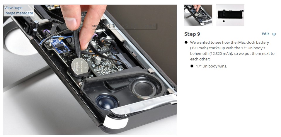 "the iMac clock battery (190 mAh) stacks up with the 17" Unibody's behemoth"