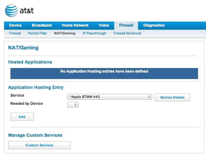 On the NAT/Gaming page, click the Custom Services button near the bottom.
