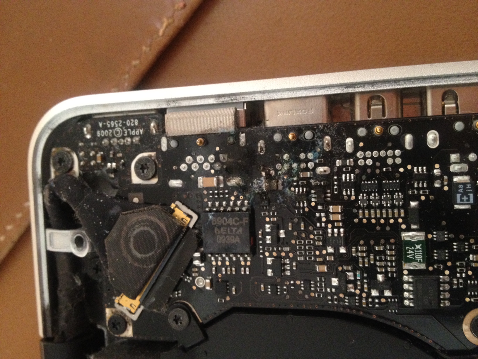 You could read up on cleaning it.. but only with an apporpaite electronics cleaning solution. If you do elect to clean it up, don't do it with any electrical power attached. Alternatively you could take it to a local Mac repair shop to do this. This is a delicate job since you shouldn't disturb the solder etc.