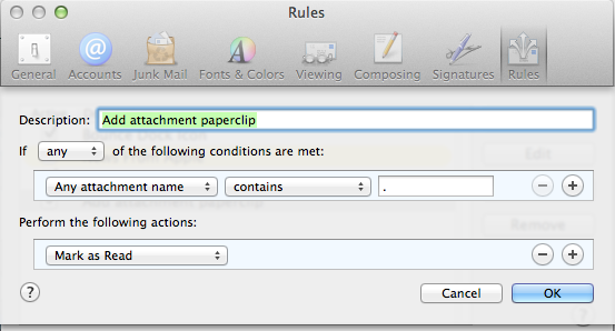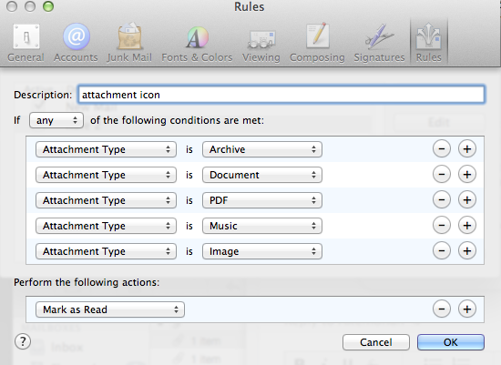 3) And even if there is, the mere fact we have to create and apply special "Rules" in the first place, just to get back some basic functionality that got carelessly scrambled as of Lion -- and >>> STILL <<< hasn't been fixed -- is beyond ludicrous, and utterly inexcusable.