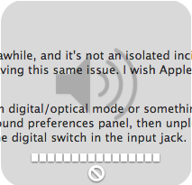 Hey guys. I have been working on my 2006 MacBook Pro with OS X 10.7.5 for a while when the sound went out. No red light. I got not sound from either my internal speakers or from the headphones jack. I tried flashing the PRAM and putting headphones in and taking them out with no results. When I would plug in the headphones in System Prefs -> Sound -> Output the Device would change from Internal Speakers to Headphones as it should. Never said Digital out or anything. I could change the volume with the keyboard keys and the volume icon in the top bar. The volume symbol that came up never showed the circle with a line through.