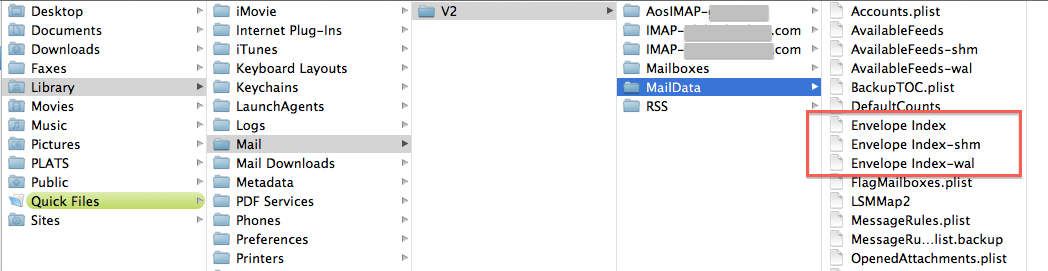 Very nice of you to reply. I followed your suggestion but I do not have the Envelope Index Files in that folder. Any other ideas. I have not opened my mail program for weeks and bought Sparrow to use as a substitue but would much rather have my Mac mail program.