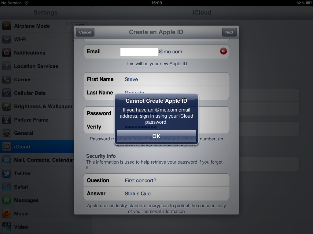 I'm not understanding Winston Churchill is saying users can't create an iCloud account with an @me.com address, when in fact, every user with an iPhone/iPad/iPod Touch/Lion is given three free accounts that can use an @me.com address.