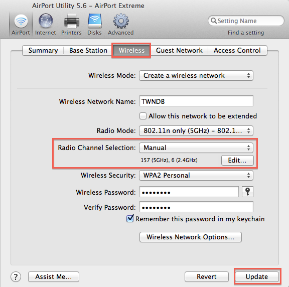 Click Save, then click Update and allow 25-30 seconds for the AirPort Extreme to restart