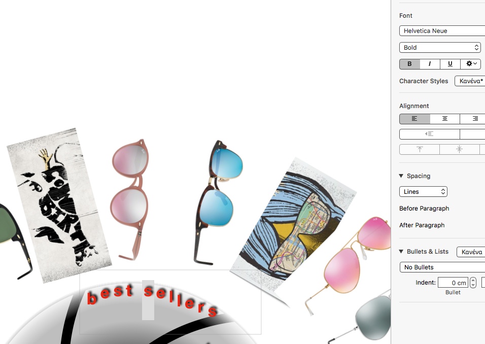 Pages won't do it but you can use Art Text 2. Thre is also a free version.