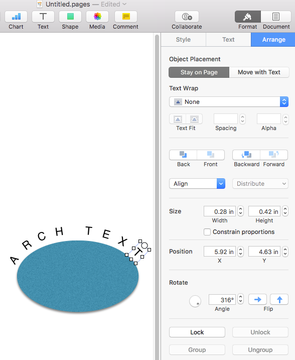 Can you arch or shape text in pages? If so can someone please give me directions on how to do it.
