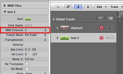 3) In the Track Parameters, change the MIDI channel of each track from the 'ALL' to ch 1 or ch 2 as needed.