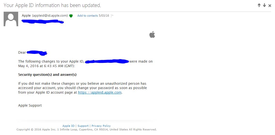 They all said I updated information like security questions, passwords, and emails. Or said that my account was being signed into devices I don't have in locations I wasn't in. But I checked my account and nothing was changed. Long story short, someone went on a shopping spree on my account while I slept, and now I have to wait for Apple to refund my money.