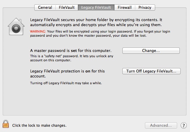 I have a problem I forgot to dis able Vile fault when installing Mountain lion on top of Snow leopard and I went to Security and was surpried to see Leg acy Vile fault (sorry about the pun) it would not turn off and the screen went blank and a little grey cog spinning below ,I gave up and went to the new Vile Fault and set it it seems to be ok.