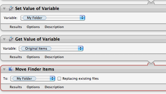 5) Move Finder Items: This is the step that I'm stuck on. I don't know how indicate the newly created folder in step 3