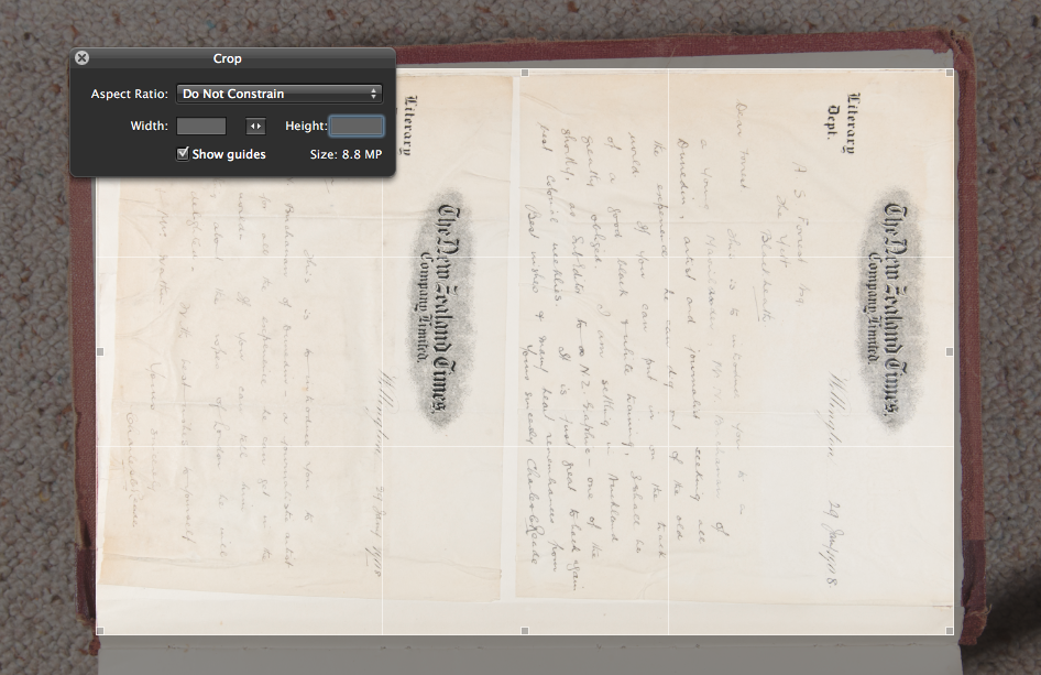 I'm photographing an old scrapbook that has over 200 pages. I used the "do not constrain" to crop the first page. Now I want that same aspect ration for the rest of the pages.The pages are going to be printed at13.5 x 9.00 inches so I put this value into the custom crop HUD but the crop ratio it gave was incorrect.