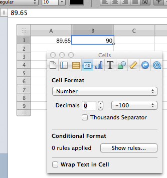 Note that column G in the template is formatted to show the result as a percentage, with no places after the decimal. If you want to show results to the nearer hundredth of a percent, you will need to edit the format, using the Inspector, to show two decimal places.