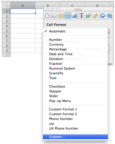 I just paid for numbers latest version June 2012. iPad 3' v5.1.1. Want to format a cell as a currency not in the little list chosen by apple. Forums suggest using the custom format option but I can not see this anywhere? Any ideas how to add a custom format or how to extend the list of currencies to all currencies. If nothing else missing out a countries currency as too unimportant to include is just plain rude!